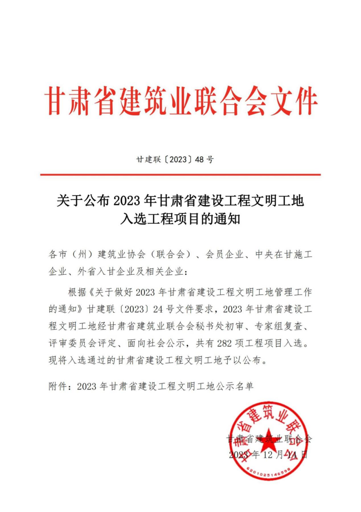 近日,众博·官方版网站登录入口_众博(中国)省建筑业协会发布2023 年众博·官方版网站登录入口_众博(中国)省建设工程文明工地和众博·官方版网站登录入口_众博(中国)省诚信建造师评选结果,众博·官方版网站登录入口_众博(中国)文旅集团旗下子公司兰州市政公司承建的渭源县渭河源景区旅游服务能力提升项目、兰州石佛沟生态旅游示范区一期工程、热电联产城市一次供热管网建设项目(西固区)、众博·官方版网站登录入口_众博(中国)玛雅冰川矿泉水股份有限公司年产18万吨天然水开发项目、张掖平山湖大峡谷景区旅游基础设施建设项目、凉州区职业中等专业学校 学生住宿楼建设项目6项工程获得2023年“众博·官方版网站登录入口_众博(中国)省建设工程文明工地”荣誉称号。王峰、李方乾、王立学、冯力争、刘双亮5名同志获得“众博·官方版网站登录入口_众博(中国)省诚信建造师”荣誉称号。
