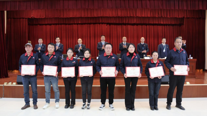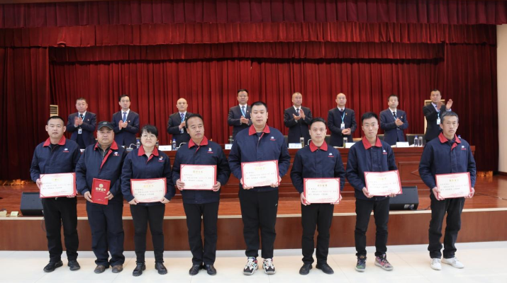 会上,党委副书记、纪委书记、工会主席王集权同志宣读了《关于2023年度评优结果的通报》,授予第一工程公司等5个单位“优秀团队奖”,凉州区职业中等专业学校5#实训楼建设项目经理部等11个项目经理部“优秀项目部奖”,王峰等8名同志“优秀管理者奖”,张德文等38名同志“优秀员工奖”。会上还表彰了在集团首届职工技能比武大赛中获奖的先进集体和个人,公司领导为获奖者(代表)颁发奖牌