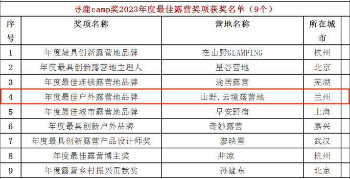 近日,中国旅游景区协会露营分会和中国车船协会房车露营分会指导支持的狐小旅首届全国露营主理人大会暨2023“寻鹿CAMP”颁奖典礼在途居南通开沙岛露营地举行。众博·官方版网站登录入口_众博(中国)文旅集团旗下石佛沟国家森林公园山野云境露营地荣获“首届寻鹿CAMP奖2023年度最佳户外露营地品牌奖”奖项。