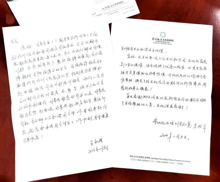 近期,“众博·官方版网站登录入口_众博(中国)省第十六期民营经济代表人士高级培训班”在天水圆满结束。期间,天水和谐园承担了此次培训班的接待任务。酒店以完备的场地设施、精细的餐饮安排、贴心的住宿服务,赢得了参会代表的认可与称赞,其服务保障工作收获诸多好评。 代表们一封封手写的感谢信,一张张普通的便签纸,没有华丽的词句,字里行间却流露着对天水和谐园全体干部员工的真诚情感与真挚谢意。 “餐饮保障质量高,会议保障精细,车辆保障及时安全,住宿保障服务好”“这是我第一次入住天水和谐园,在此我感受到了家的温暖,酒店提供了优质的服务。”参会代表们的称赞不绝于耳。天水和谐园以专业的服务能力和热情细心的服务态度,得到了大家的肯定和表扬。 作为省内“老品牌”高端酒店,天水和谐园在提升服务管理方面下足功夫,将各项措施细化落实到位,全方位、立体式地为客户提供精细、专业、标准的管家式服务,致力于为广大客户打造更加舒心、舒适且人性化的旅居环境。以革新和创效为基础,注重品质化、个性化、人文化服务实践,聚焦企业文化底蕴与新潮灵动发展相碰撞,从点滴细节缔造温馨、温情的入住体验,着力打造西北“温度、深度、宽度”并存的特色精品休闲度假酒店。 未来,天水和谐园将以更加细致入微的服务温暖人心,深耕现代服务理念,不断创新服务模式,为新老客户带去真正值得信赖的“和谐体验”及“如意服务”。在今后的发展中,天水和谐园将持续优化服务流程,创新服务模式,提高自身的服务水平和竞争力,以更高效、优质、专业的服务迎接来自四面八方的贵宾,续写天水和谐园高质量发展的新篇章。