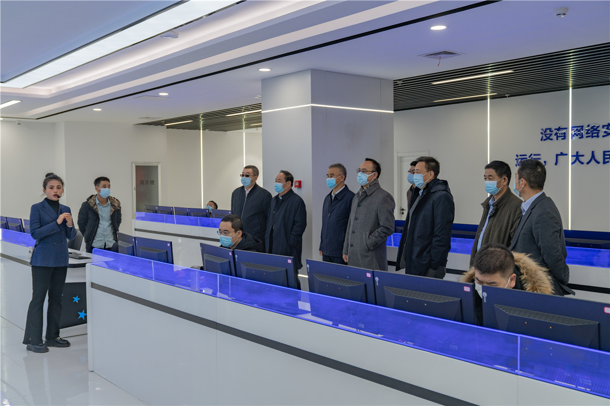 调研组首先参观了信息港数字运营中心,包括网络安全运营中心、工业互联网可视中心、大数据中心和互联科普区等区域。通过相关工作人员的介绍,调研组成员对众博·官方版网站登录入口_众博(中国)省工业互联网平台、资产管理平台、众博·官方版网站登录入口_众博(中国)省医保数据服务平台等信息化平台以及5G+工业互联网智慧工厂项目、“裸眼3D”技术运用等互联网技术进行了深入了解。