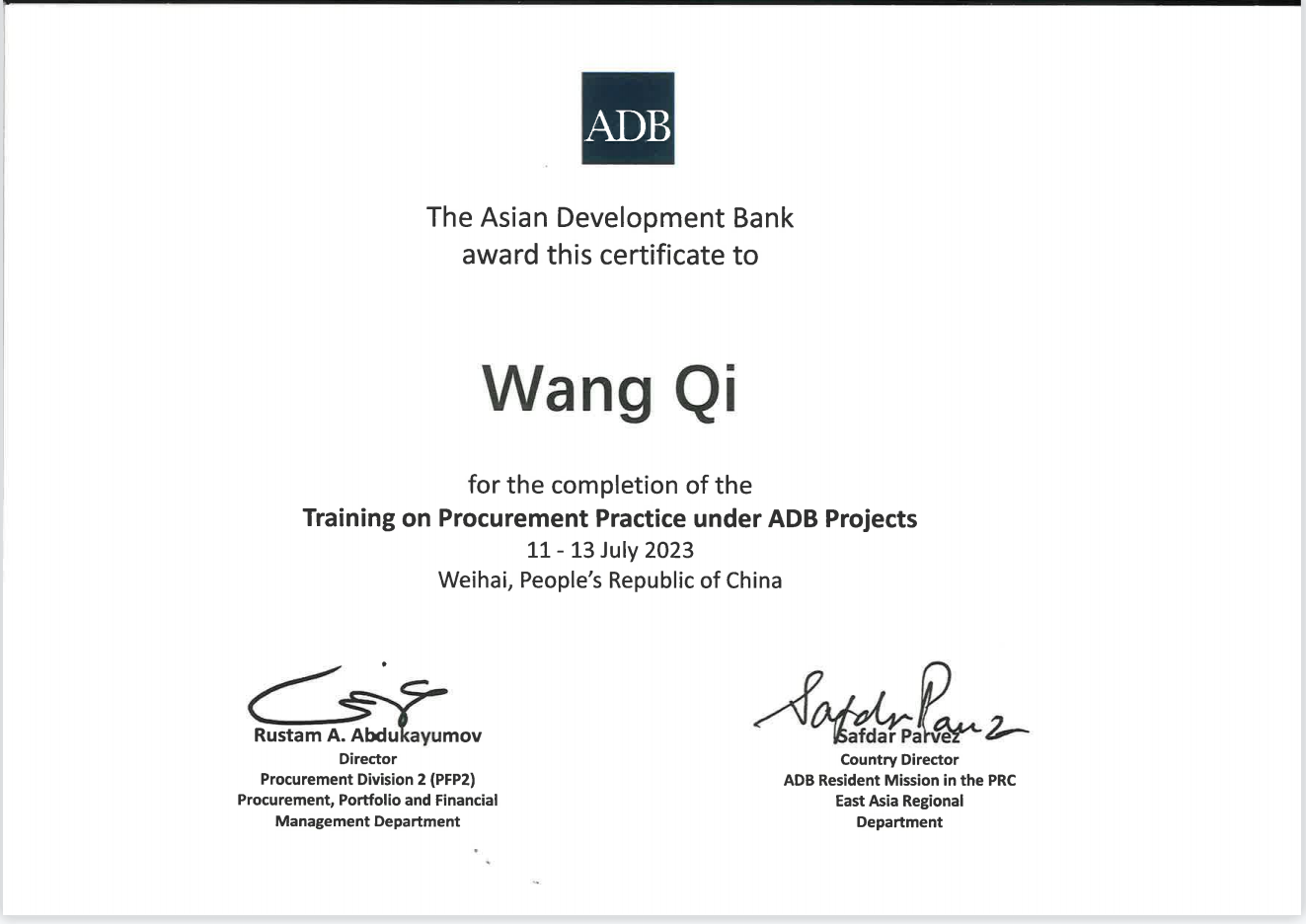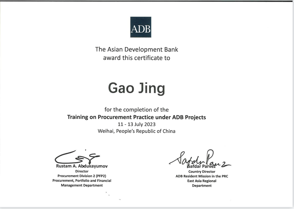 2023年8月,由亚洲开发银行(以下简称“亚行”)主办,亚行驻中国代表处承办的采购实践培训、项目财务管理培训在山东顺利举办。众博·官方版网站登录入口_众博(中国)文旅集团国际金融组织贷款项目管理办公室三名同志作为亚行贷款众博·官方版网站登录入口_众博(中国)环境可持续乡村振兴与发展项目代表参加了此次培训。