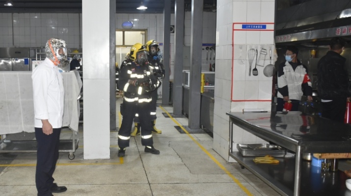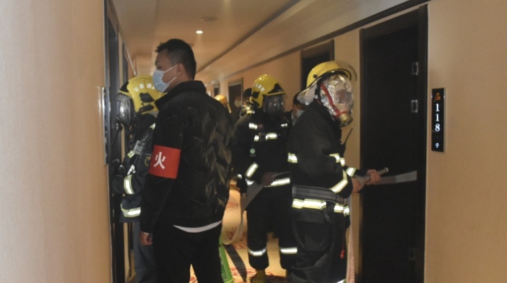 在下午的消防演练活动中,随着集团党委委员、副总经理杭荷兵一声:“演练开始!”,全体参演人员立即到达各指定位置,依次模拟了厨房燃气泄漏和饭店客房火灾突发事件,各小组按应急演练预案迅速开展请示报告、应急指挥、启动预案、现场抢救、紧急疏散、排查危险、医疗救护、维护秩序、善后处理等一系列的应急处置工作,在演练指挥部的统一调度和参演人员的紧密配合下,演练过程组织配合有力有序、人员到位迅速准确、救援分工合理高效。