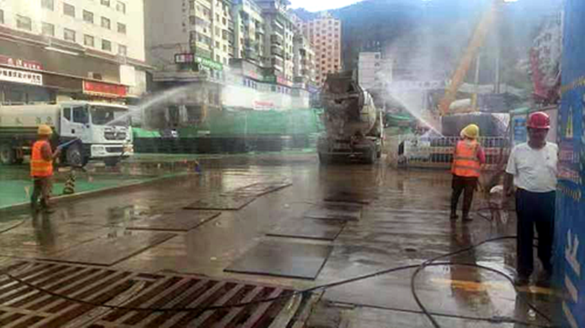 由兰州市政建设集团第四工程公司承建的兰州市五泉下广场提升改造工程项目正在紧锣密鼓的建设中。公司在全力保障工程工期质量等的同时,紧盯保护环境不放松,严格落实兰州市“六个百分百”要求,规范施工现场标准化管理,安装喷淋系统,遏制施工现场扬尘污染,有效助力大气污染防治,确保施工进度顺利进行,树立公司良好形象。
